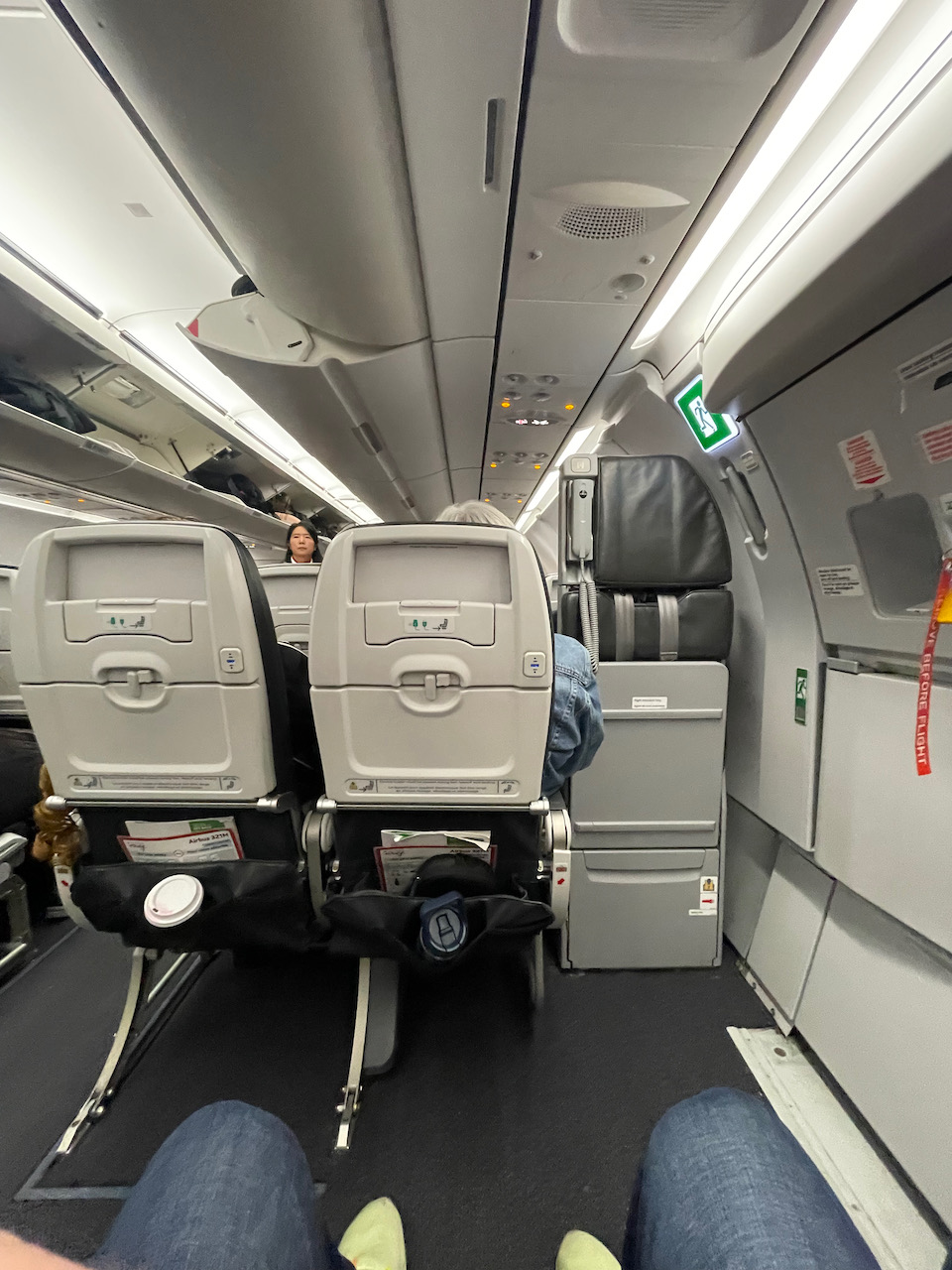 For this flight I selected an exit row so that we wouldn’t be squished in the seats for couple hours to Florida. From memories of our 2019 flight and seeing how little legroom exists on Air Canada Rouge, I was glad with the extra space. We arrived at the gate as boarding had already commenced and we quickly joined the line and were soon on board.