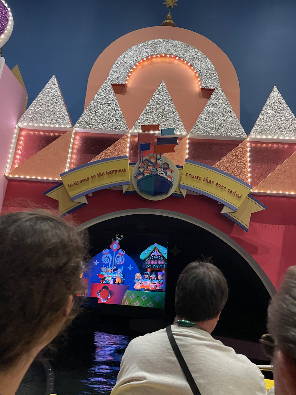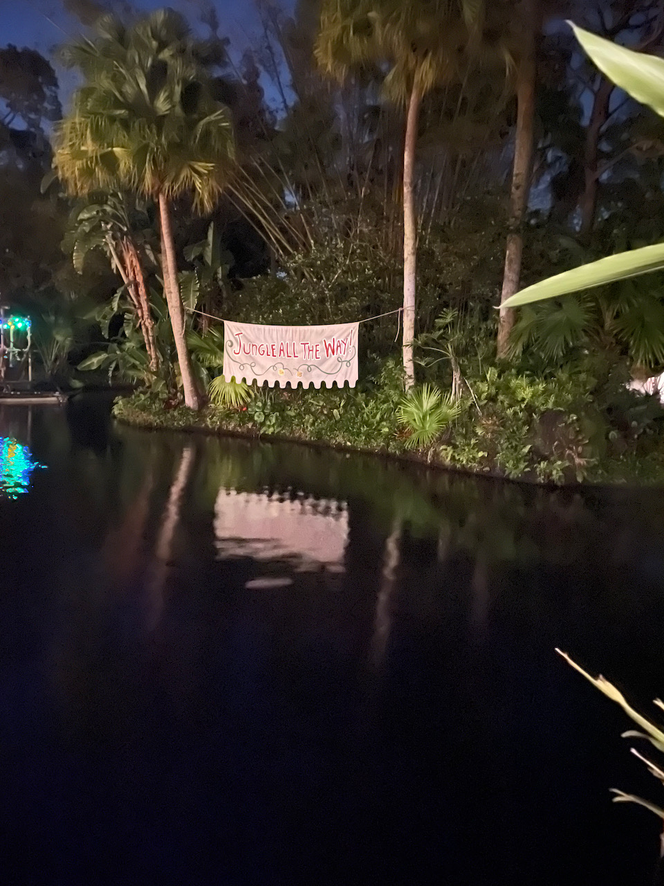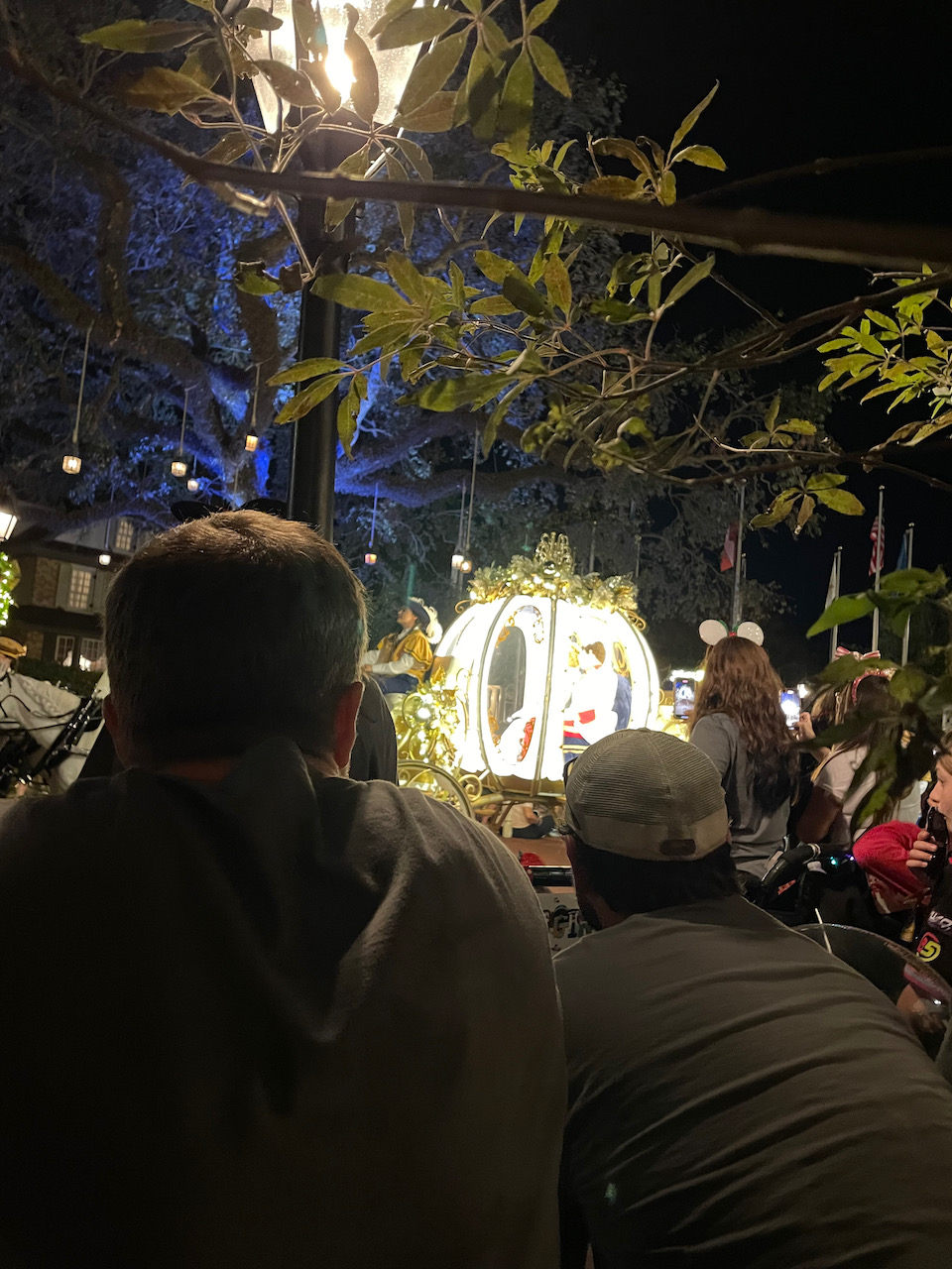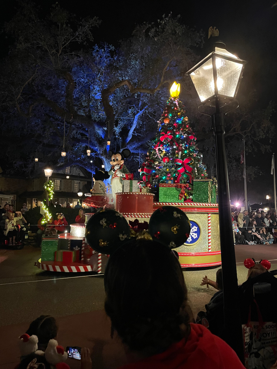 In 2024 Disney offered “Mickey’s Very Merry Christmas” at Magic Kingdom, and on alternating evenings another themed event was at Hollywood Studios. We selected Magic Kingdom largely because, it’s Magic Kingdom — the original theme park to Walt Disney World. Also with the prospect of having shorter waits for rides, this park had rides that we’d both enjoy. This was our first visit by car and after parking your car, a shuttle delivered us to the terminal to take a ferry across the water to the main entrance.