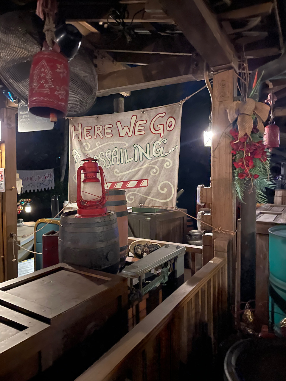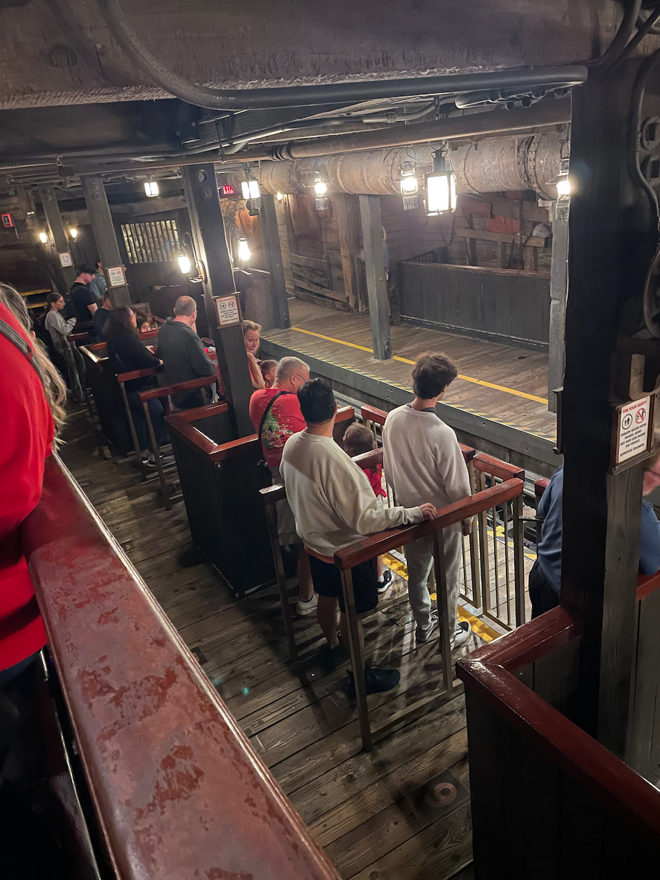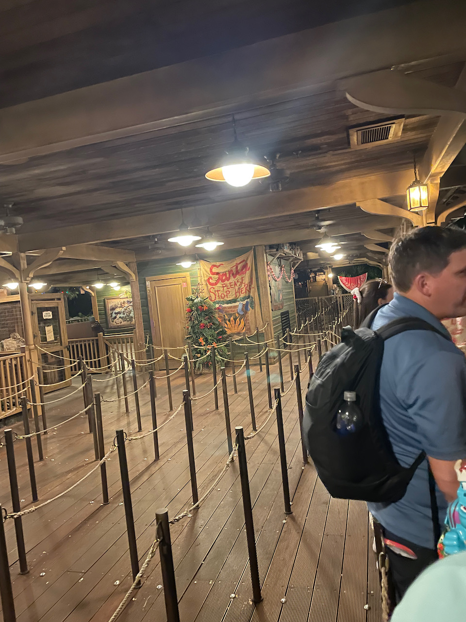 After Big Thunder Mountain Railroad, we headed over to Pirates of the Caribbean. Here the line was maybe 20 minutes, and decorations for Christmas were easy to spot.