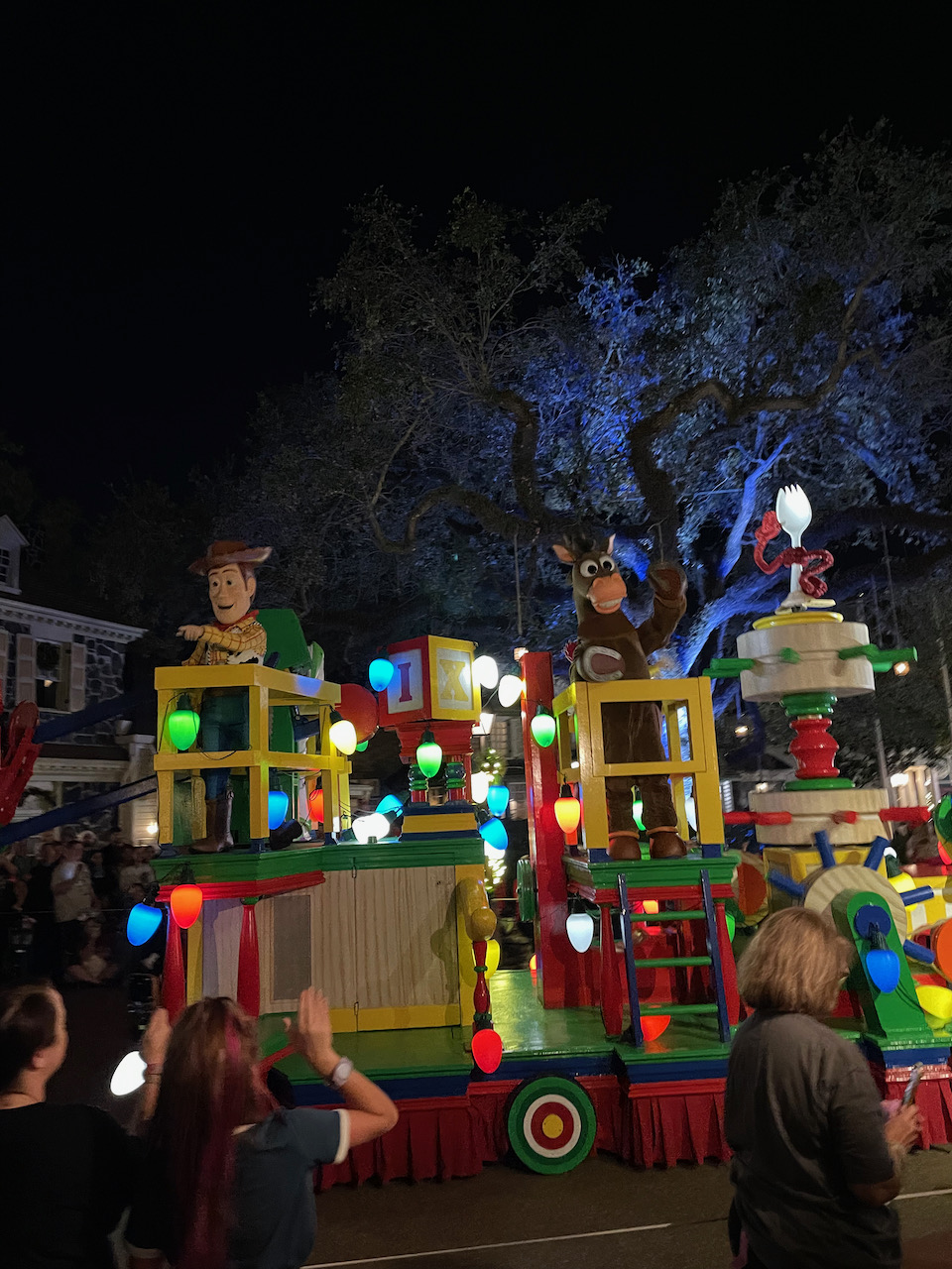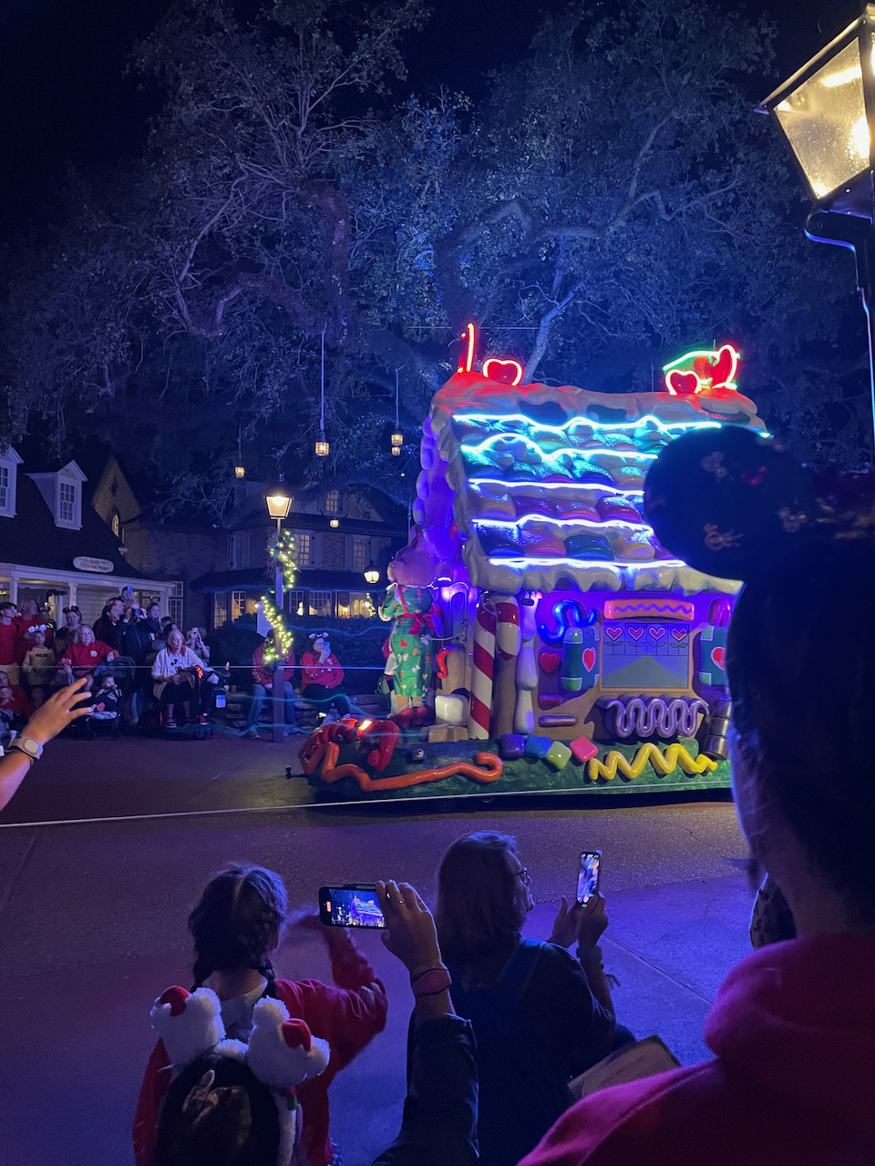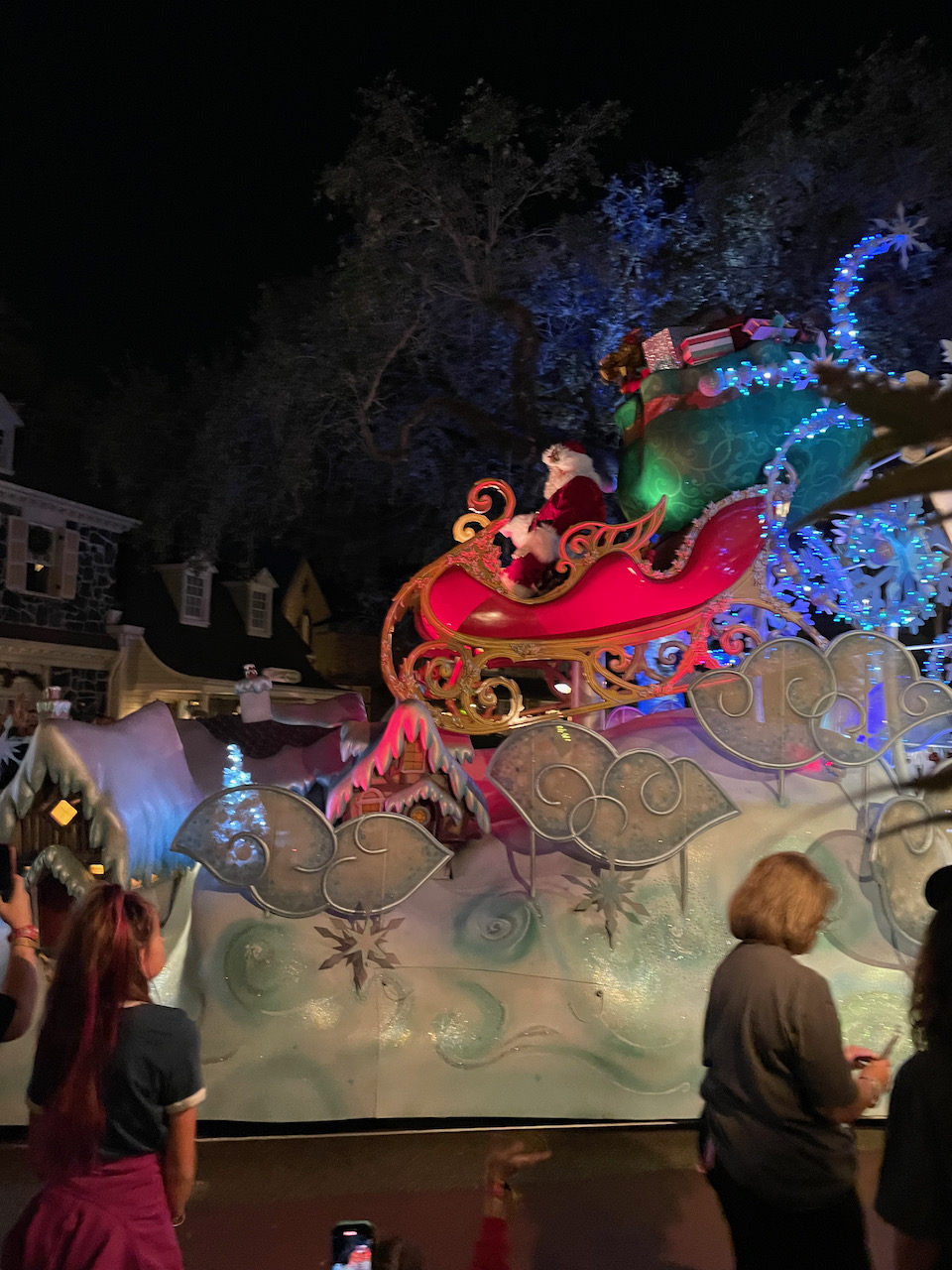 After a few more rides (such as the Seven Dwarfs ride) I caught up with Little Miss on Main Street for some shopping as we made our way out of the park. Our timing could not have been better — during the parade, Disney had fake snow machines running. Combine that with the holiday themed floats, and, music; the atmosphere was outstanding.