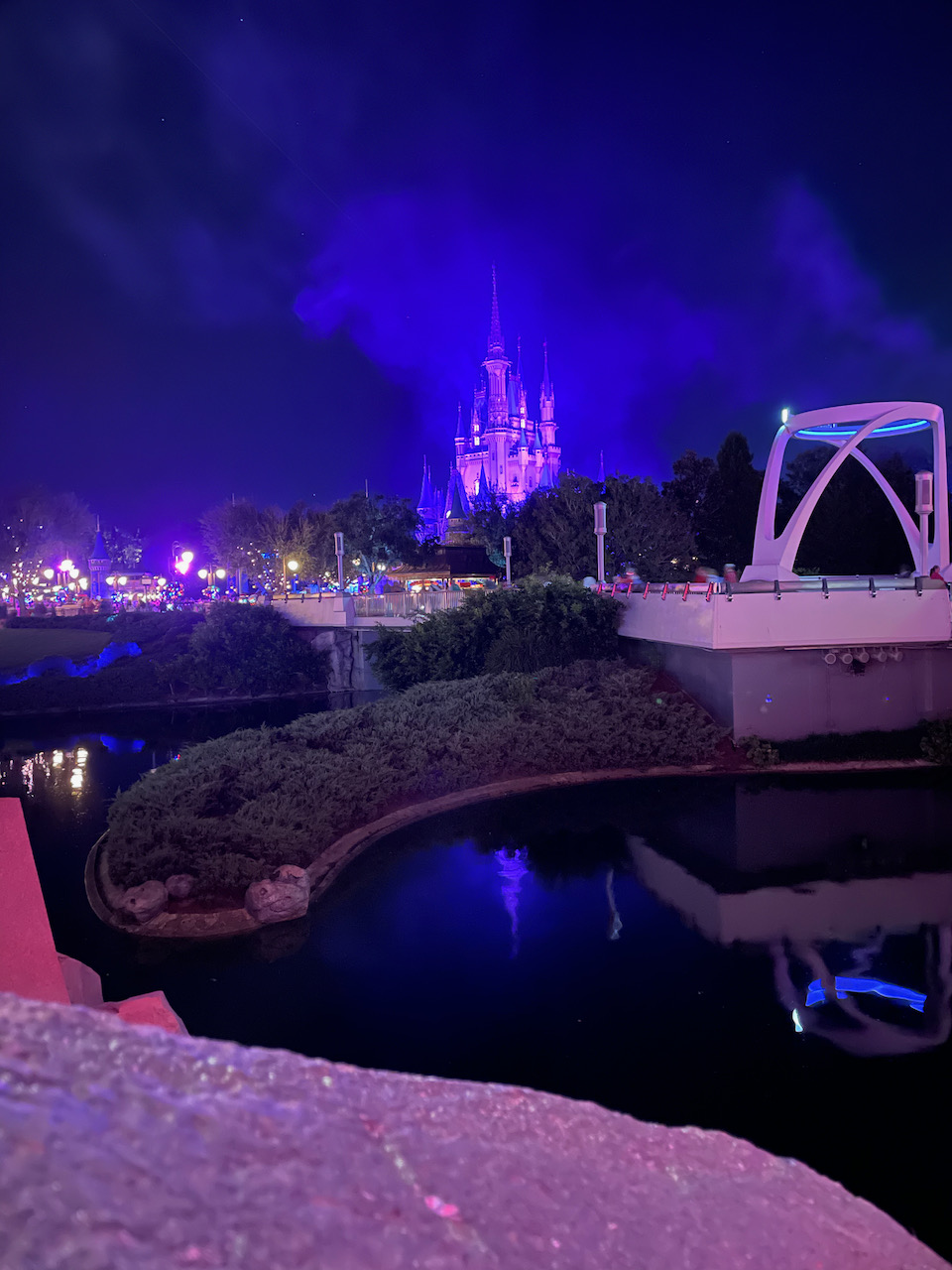 There were more rides we took both before and after the fireworks. One special treat for me was Space Mountain. Little Miss didn’t join me, and so being a single rider enabled me to quickly get a seat once the line had us in the main area to hop on the roller coaster. Instantly once the ride started I was reminded that this ride is not the smoothest roller coaster.