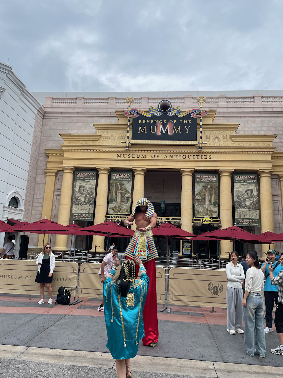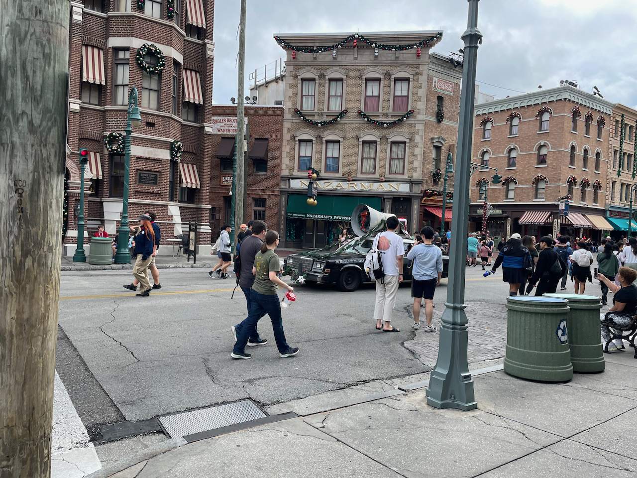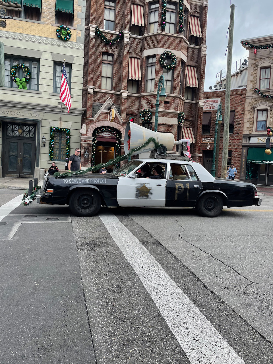 We knew this would be a long day for us. Even without the expectation to go on many of the rides we wanted to have time to take in the theme parks. Our visit was before their Epic Universe park opened, but we still had lots to see. We arrived around 10am and joined the many people visiting the park. We started on the Studio park. It too had Christmas decorations up on display. When we were having a snack the Blues Brothers vehicle went by, complete with an employee who must have loved his task of channeling his inner Dan Ackroyd for the loud speaker.