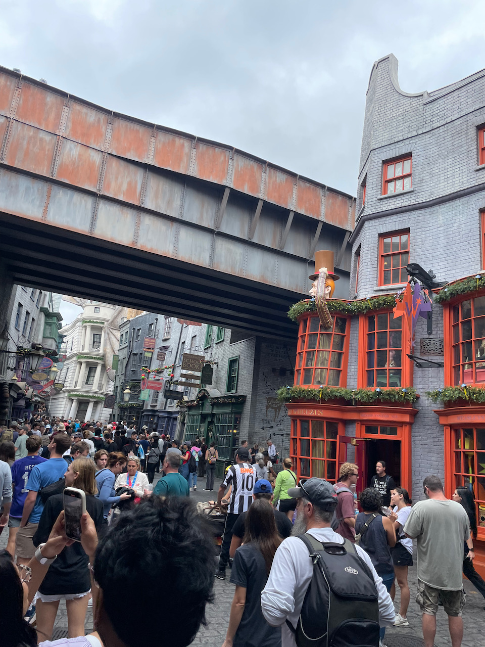 Eventually we made our way to The Wizarding World of Harry Potter – Diagon Alley. The crowds of the day were certainly present as this space was jam-packed. This space was outstanding and made us feel like we were in the movie. If my memory is correct, the staging created here was better than the original set pieces we saw from our 2017 visit to the WB lot outside of Windsor, England.