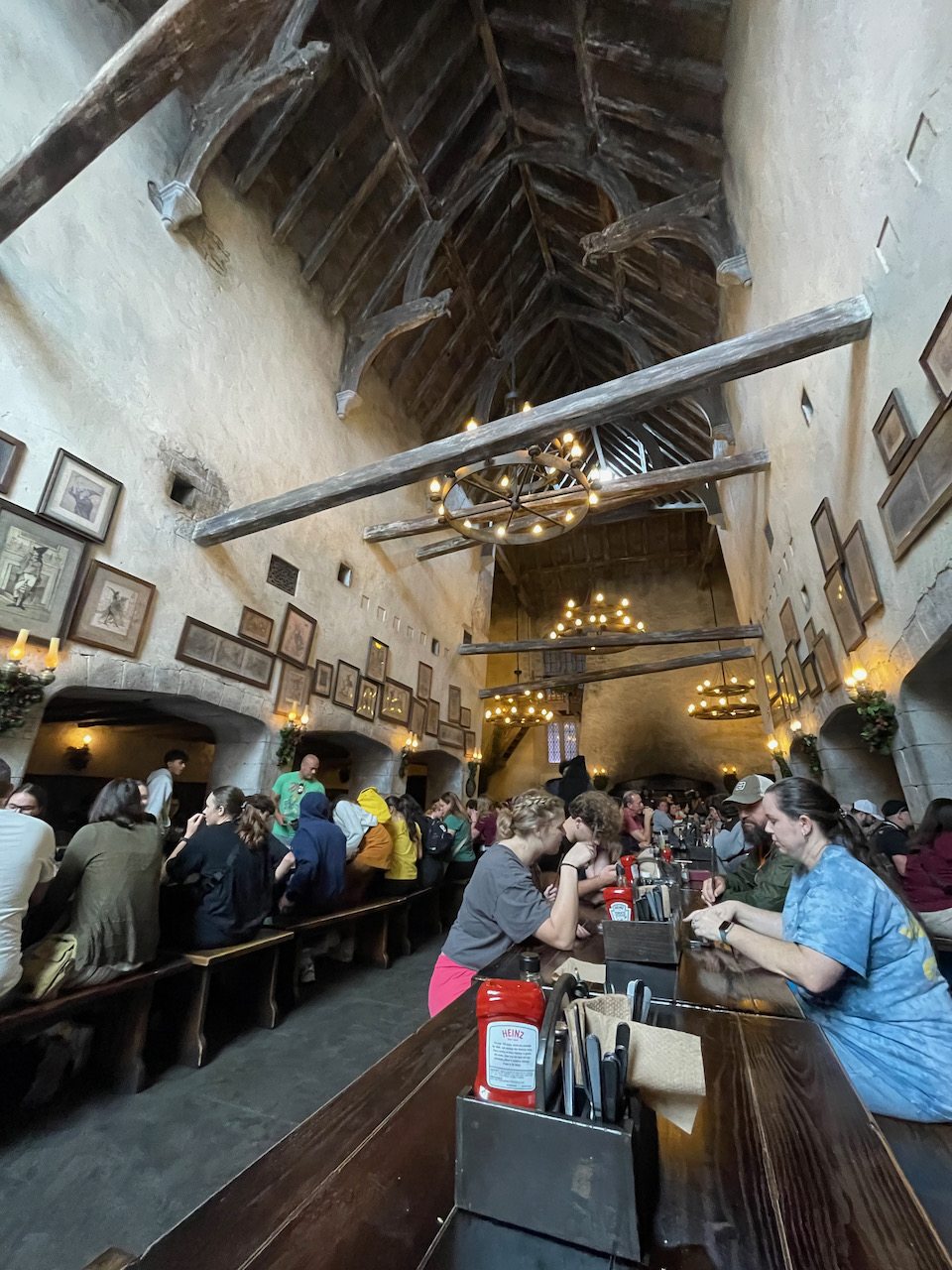 During our visit to the Alley we got hungry so we visited the Leaky Cauldron. We were seated fairly quickly, and with bench style seating you’ll sit close to other groups. (Slideshow below)