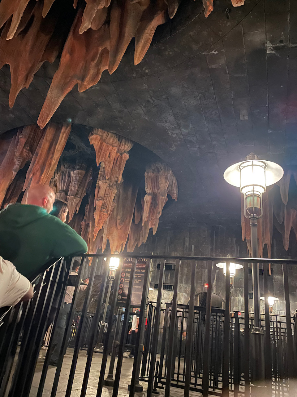The meal was fine and once filled with food and energy I went on the “Harry Potter and the Escape from Gringotts” ride. Initially, it was promising to be a single rider, however the hopes of a short wait time vanished and it was easily 30-45 minutes before it was my turn to join the ride.