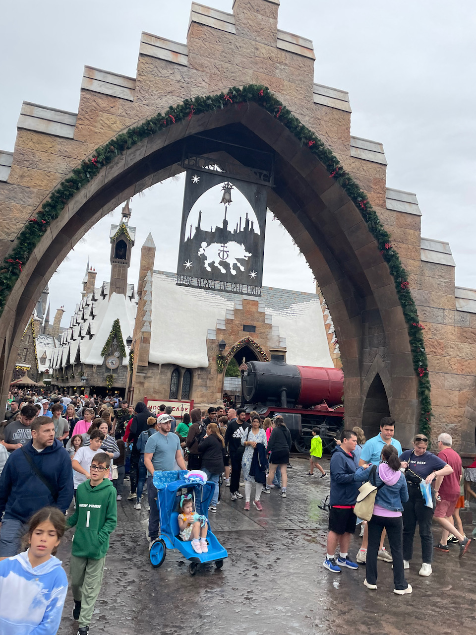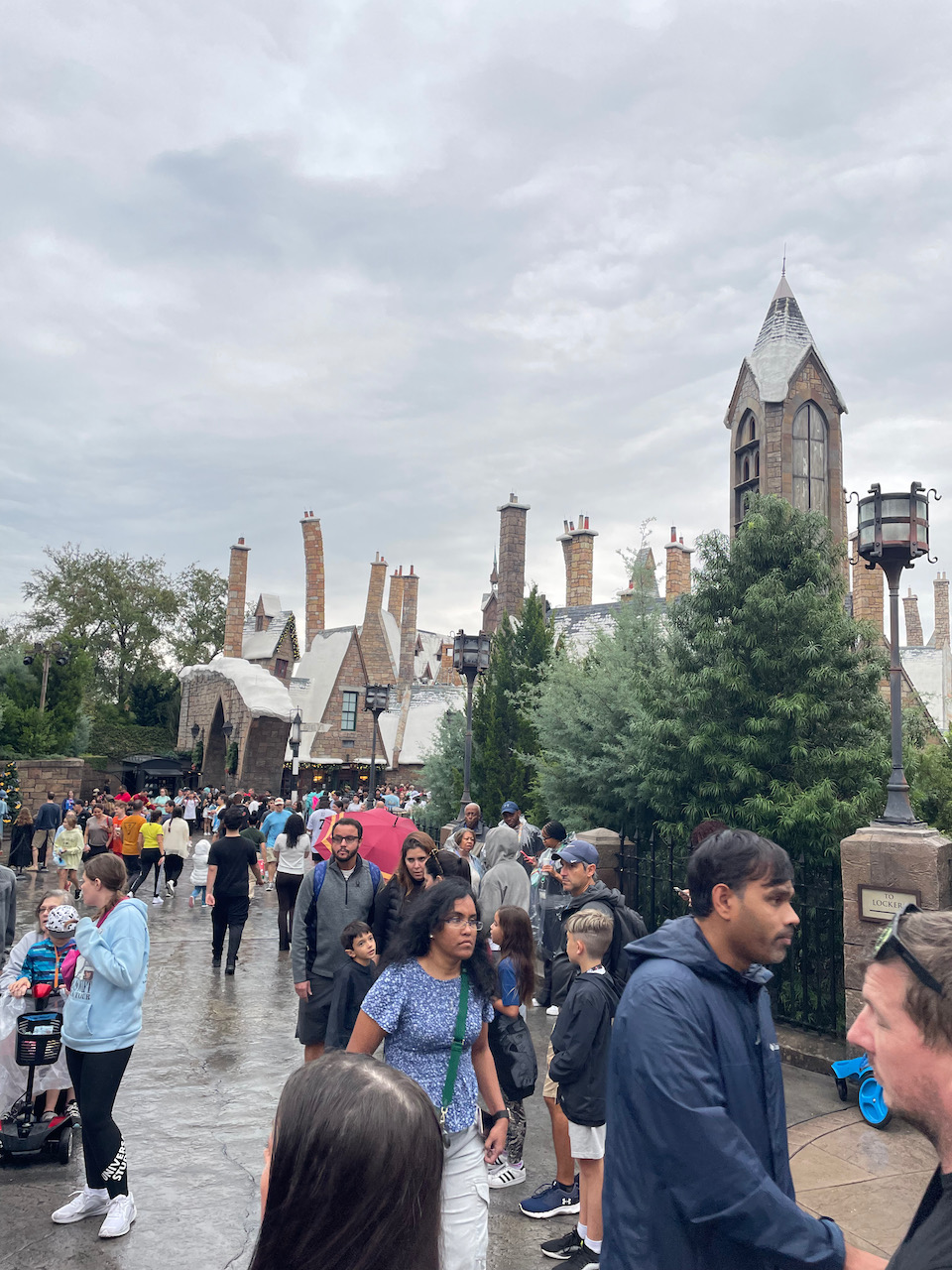 Upon arriving at the other park, er, Hogesmeade the sky opened and it rained. A lot. We ended up with an unintentional souvenir, a Howarts umbrella. (It’s a decent quality and we continue to use it back home). Here’s another slideshow after we got to Hogesmeade: