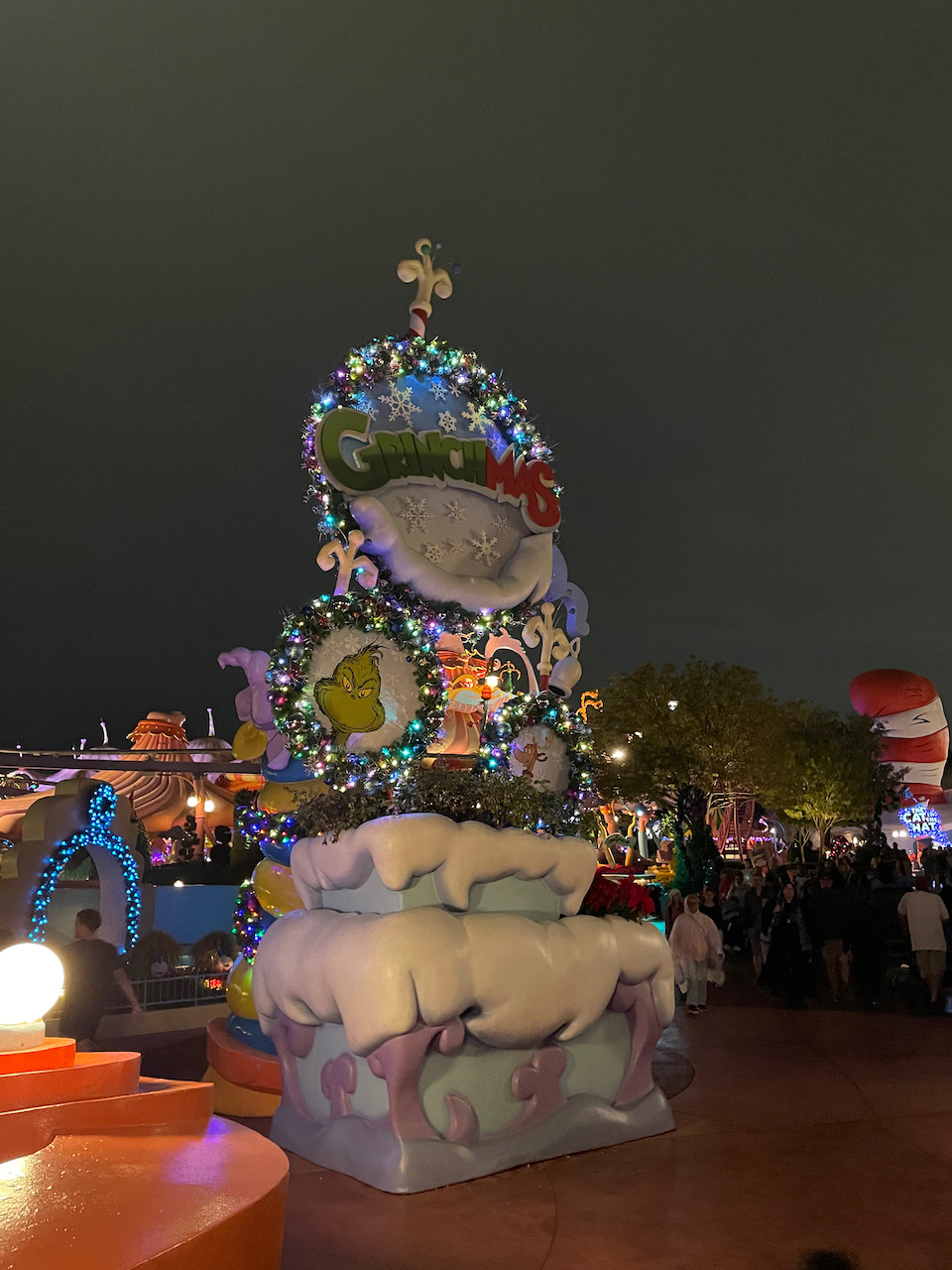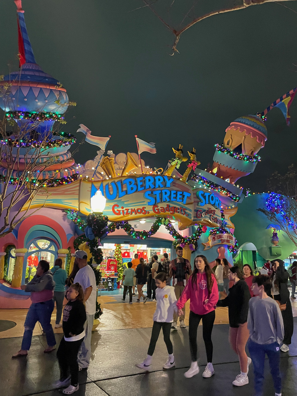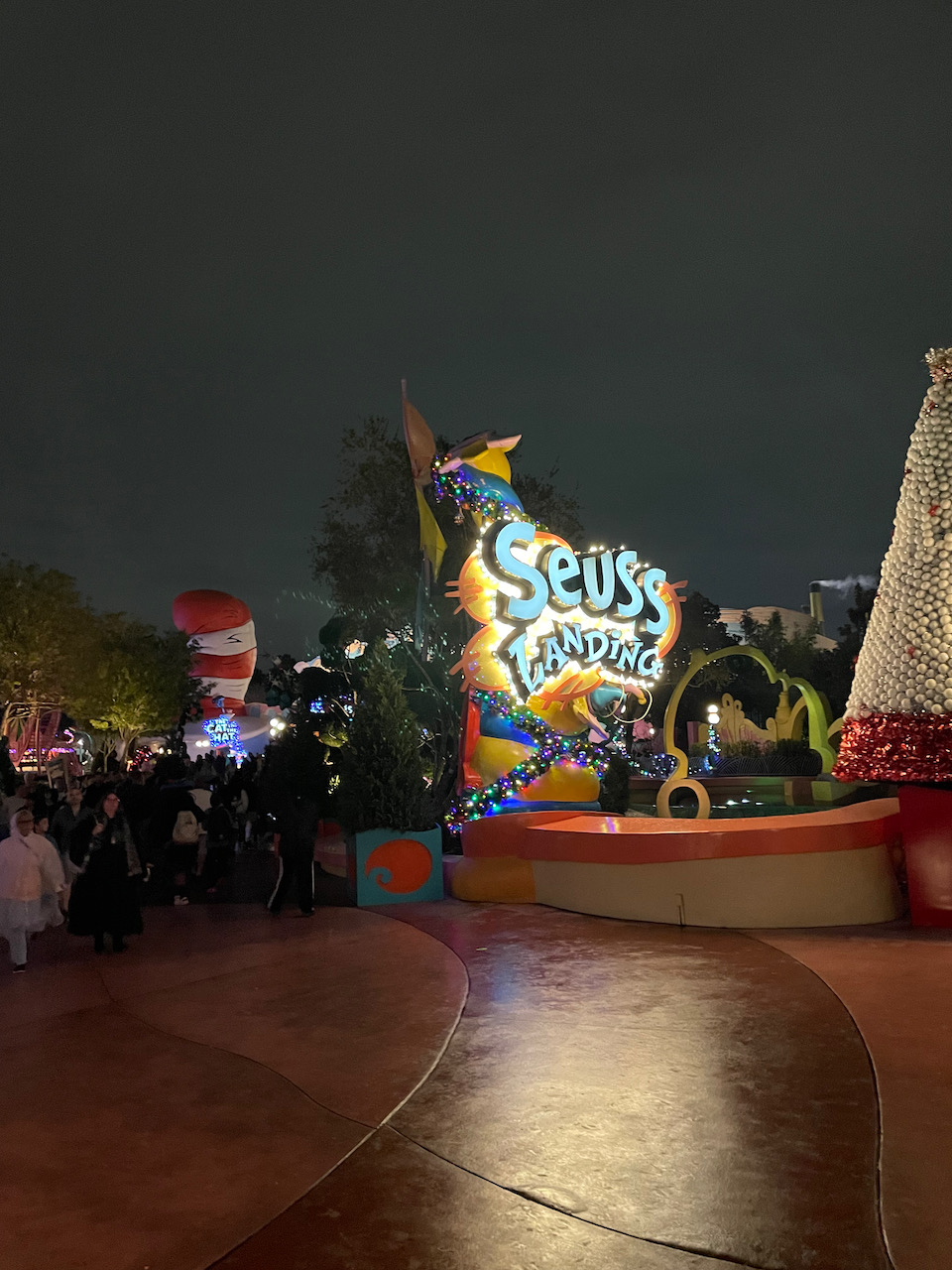 Our path to exit the park had us going through Seuss’ Landing. It was cute, and given the time of day — the sun had set and some families had departed for the day — we did go on one of the rides. Here’s a slideshow while we walked through it: