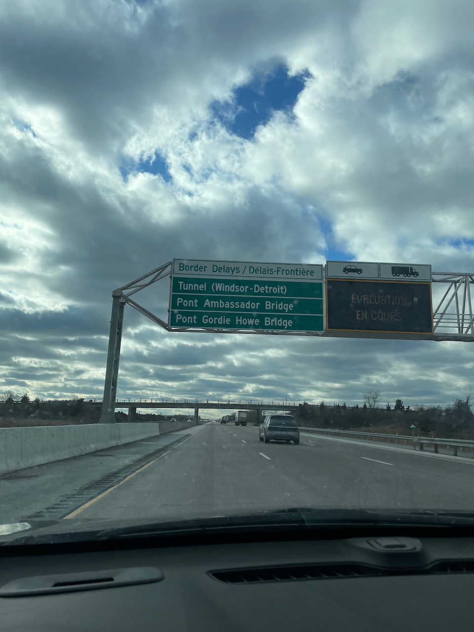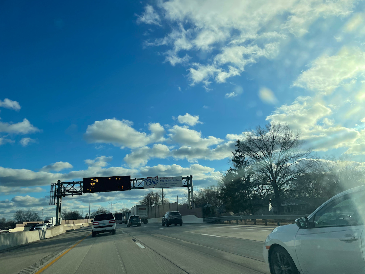 There were two snowstorms within a week in February, and between shoveling the snow, having the potential to escape winter for a few days was an aspirational goal for me. The day of our trip in early March started with another batch of wet flurries, fortunately they stopped within an hour, and by the time we past London, Ontario the sun started to make its appearance through the clouds. Crossing into the US was a breeze being able to use Nexus. During the crossing on Ambassador bridge, you cannot miss the next new crossing under construction, the Gordie Howe International Bridge. I can’t wait until we get to use it to avoid driving through the middle of Windsor before getting on a highway. We easily navigated rush hour traffic out of Detroit, and found a place to grab dinner before either of us were extremely hungry. For us, it was comfort food, Bob Evans. Below are some pictures from the initial start of the drive:
