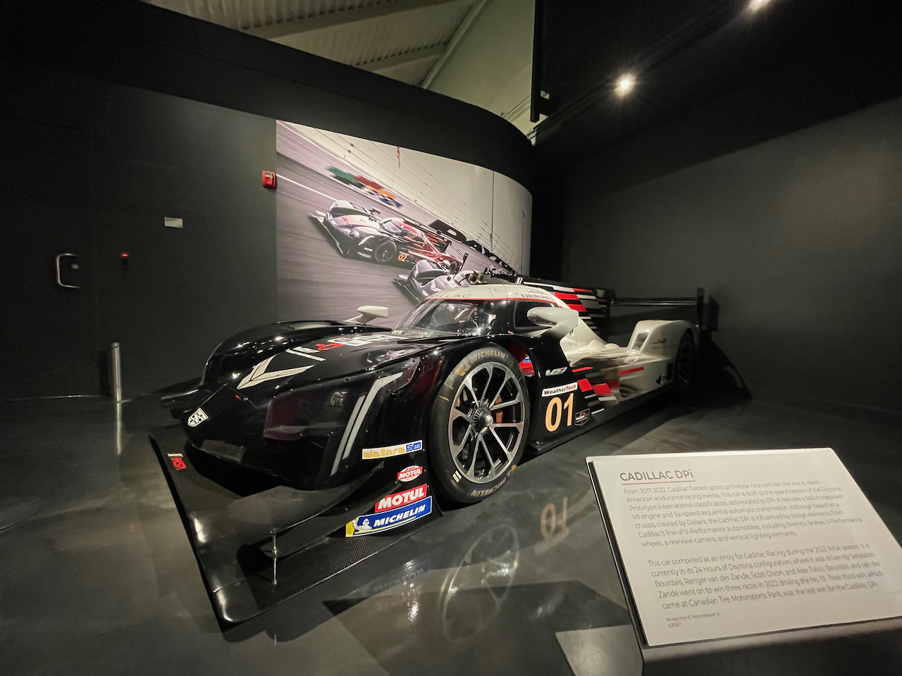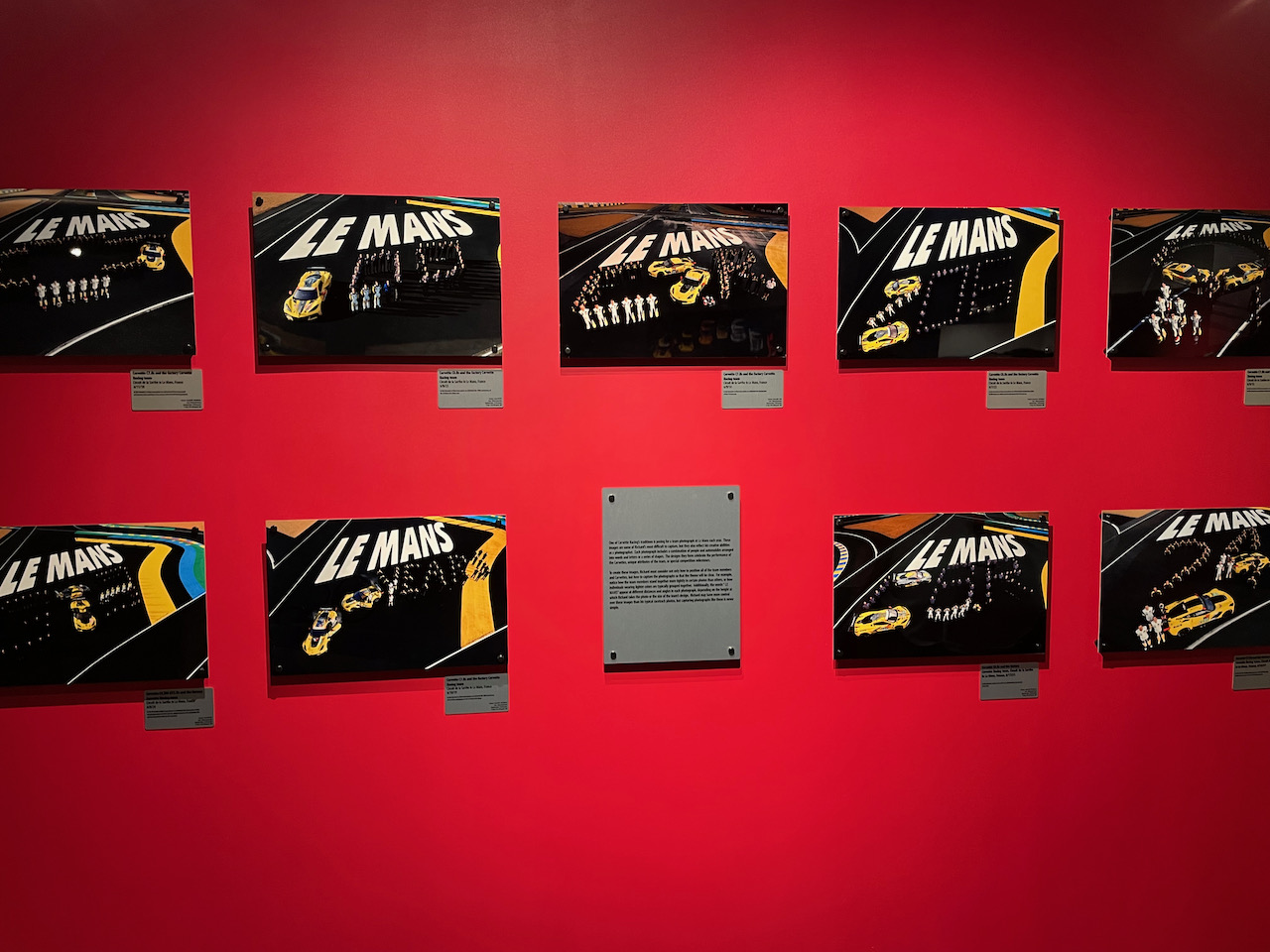 After remarks by the museum staff and Richard we were led into the gallery. An interesting part is that some race track photography might be become formulaic and repetitive. For him, he is always looking for an opportunity to take a picture from a new location, or angle to help differentiate his work. From the slideshow examples of the variety are the annual team pictures ahead of the 24 hours of Le Mans, as well as photographing in the gaps of the armco barriers on the race track.